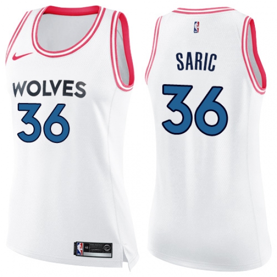 Women's Nike Minnesota Timberwolves #36 Dario Saric Swingman White Pink Fashion NBA Jersey