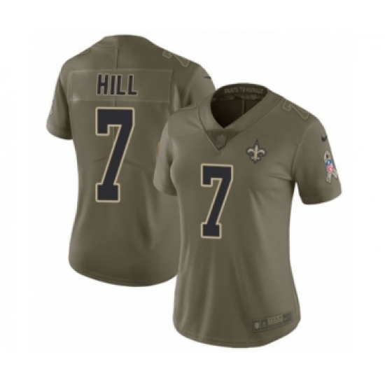 >Women's Nike New Orleans Saints #7 Taysom Hill Limited Olive 2017 Salute to Service NFL Jersey