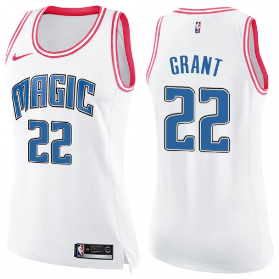 Women's Nike Orlando Magic #22 Jerian Grant Swingman White Pink Fashion NBA Jersey