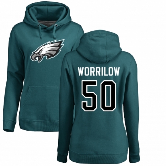 >Women's Nike Philadelphia Eagles #50 Paul Worrilow Green Name & Number Logo Pullover Hoodie