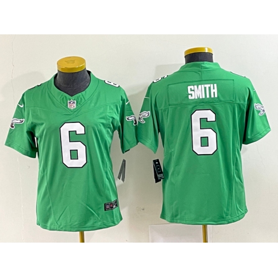>Women's Nike Philadelphia Eagles #6 DeVonta Smith Green 2023 F.U.S.E. Vapor Limited Throwback Stitched Football Jersey