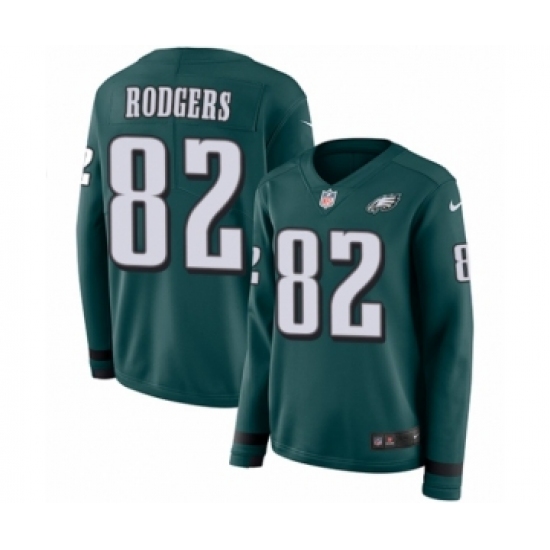 >Women's Nike Philadelphia Eagles #82 Richard Rodgers Limited Green Therma Long Sleeve NFL Jersey