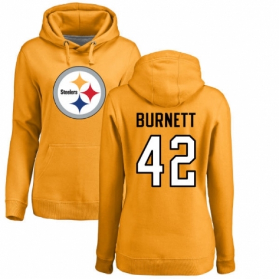 >Women's Nike Pittsburgh Steelers #42 Morgan Burnett Gold Name & Number Logo Pullover Hoodie