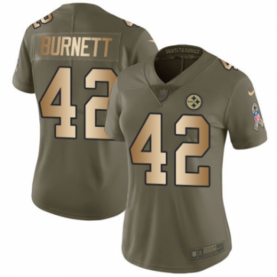 >Women's Nike Pittsburgh Steelers #42 Morgan Burnett Limited Olive/Gold 2017 Salute to Service NFL Jersey