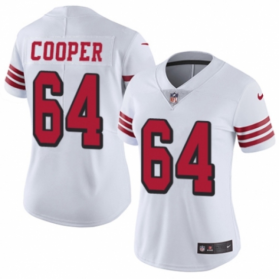 Women's Nike San Francisco 49ers #64 Jonathan Cooper Limited White Rush Vapor Untouchable NFL Jersey