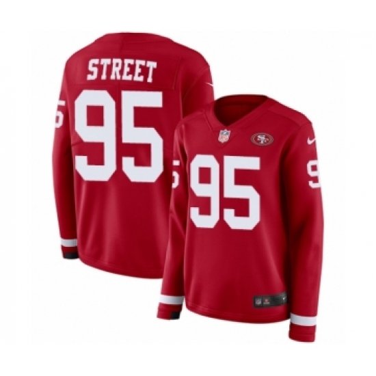 >Women's Nike San Francisco 49ers #95 Kentavius Street Limited Red Therma Long Sleeve NFL Jersey
