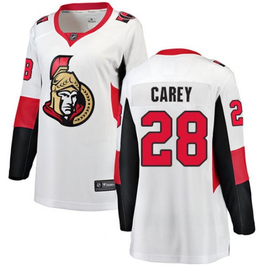 >Women's Ottawa Senators #28 Paul Carey Fanatics Branded White Away Breakaway NHL Jersey