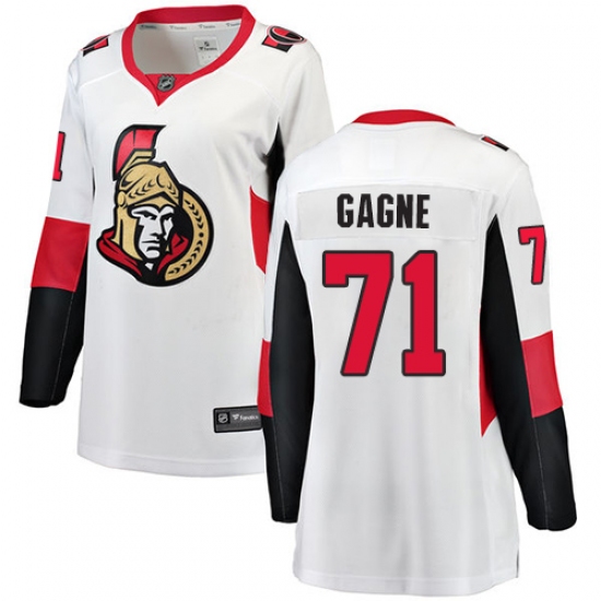 Women's Ottawa Senators #71 Gabriel Gagne Fanatics Branded White Away Breakaway NHL Jersey