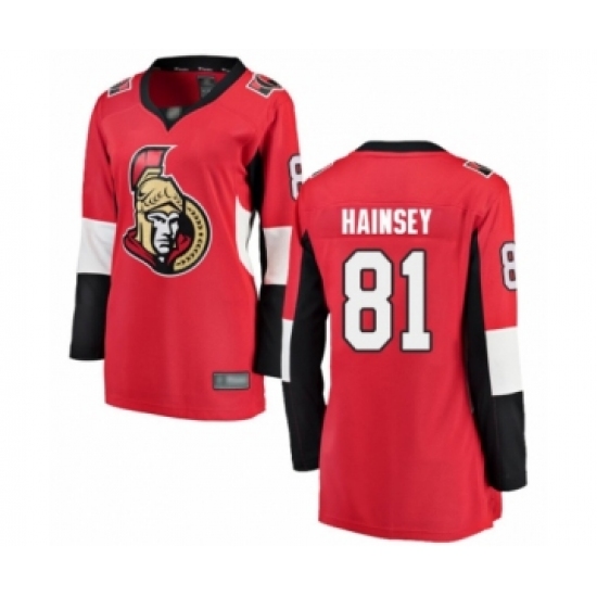 >Women's Ottawa Senators #81 Ron Hainsey Fanatics Branded Red Home Breakaway Hockey Jersey