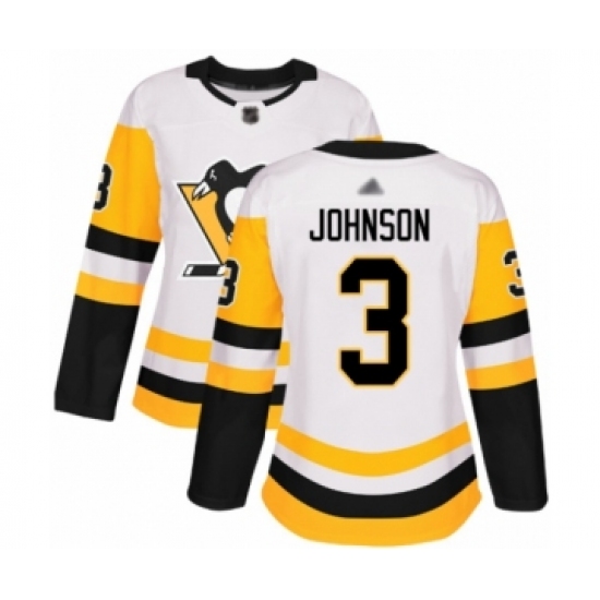 Women's Pittsburgh Penguins #3 Jack Johnson Authentic White Away Hockey Jersey