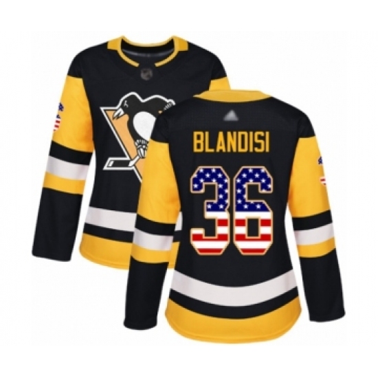 Women's Pittsburgh Penguins #36 Joseph Blandisi Authentic Black USA Flag Fashion Hockey Jersey