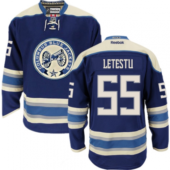 Women's Reebok Columbus Blue Jackets #55 Mark Letestu Authentic Navy Blue Third NHL Jersey