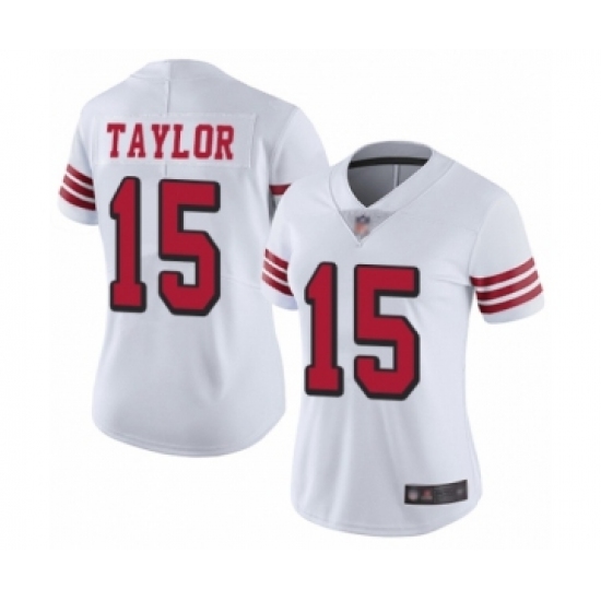>Women's San Francisco 49ers #15 Trent Taylor Limited White Rush Vapor Untouchable Football Jersey