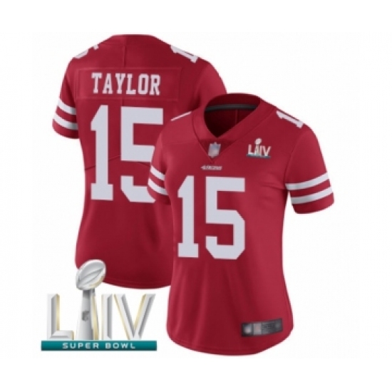 >Women's San Francisco 49ers #15 Trent Taylor Red Team Color Vapor Untouchable Limited Player Super Bowl LIV Bound Football Jersey
