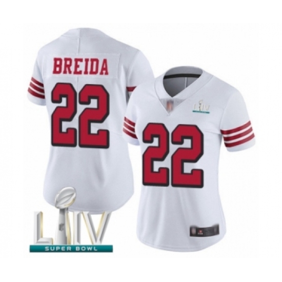 Women's San Francisco 49ers #22 Matt Breida Limited White Rush Vapor Untouchable Super Bowl LIV Bound Football Jersey