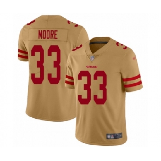 >Women's San Francisco 49ers #33 Tarvarius Moore Limited Gold Inverted Legend Football Jersey