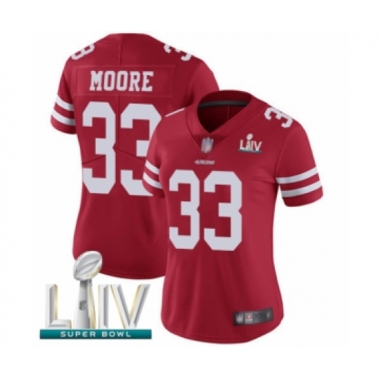 Women's San Francisco 49ers #33 Tarvarius Moore Red Team Color Vapor Untouchable Limited Player Super Bowl LIV Bound Football Jersey