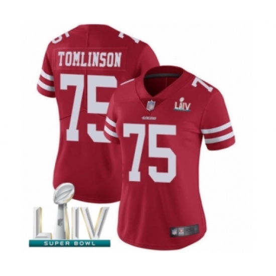 Women's San Francisco 49ers #75 Laken Tomlinson Red Team Color Vapor Untouchable Limited Player Super Bowl LIV Bound Football Jersey