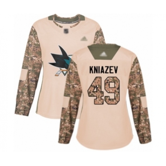 >Women's San Jose Sharks #49 Artemi Kniazev Authentic Camo Veterans Day Practice Hockey Jersey