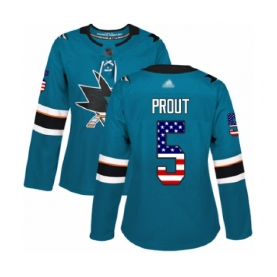 Women's San Jose Sharks #5 Dalton Prout Authentic Teal Green USA Flag Fashion Hockey Jersey