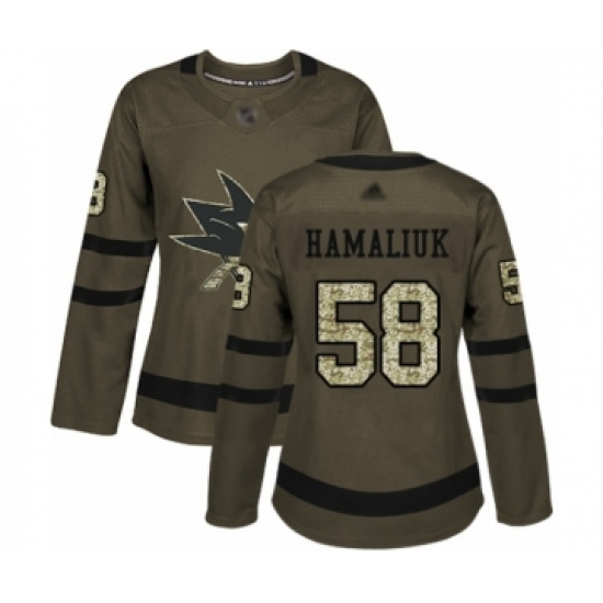 >Women's San Jose Sharks #58 Dillon Hamaliuk Authentic Green Salute to Service Hockey Jersey
