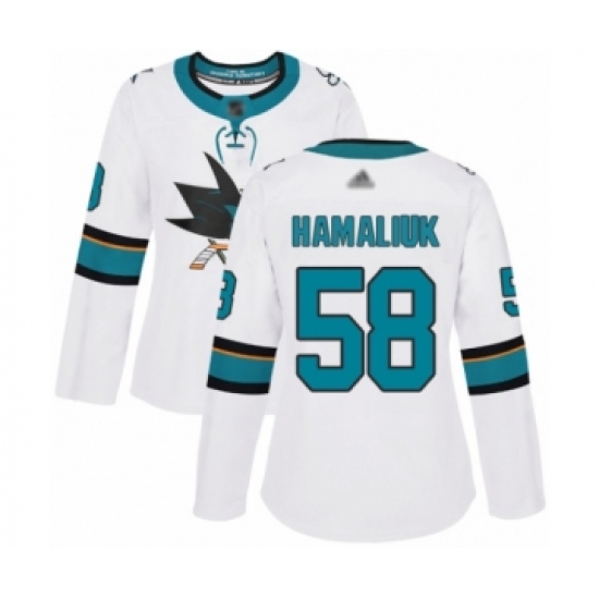 Women's San Jose Sharks #58 Dillon Hamaliuk Authentic White Away Hockey Jersey