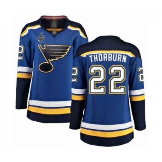 >Women's St. Louis Blues #22 Chris Thorburn Fanatics Branded Royal Blue Home Breakaway 2019 Stanley Cup Final Bound Hockey Jersey