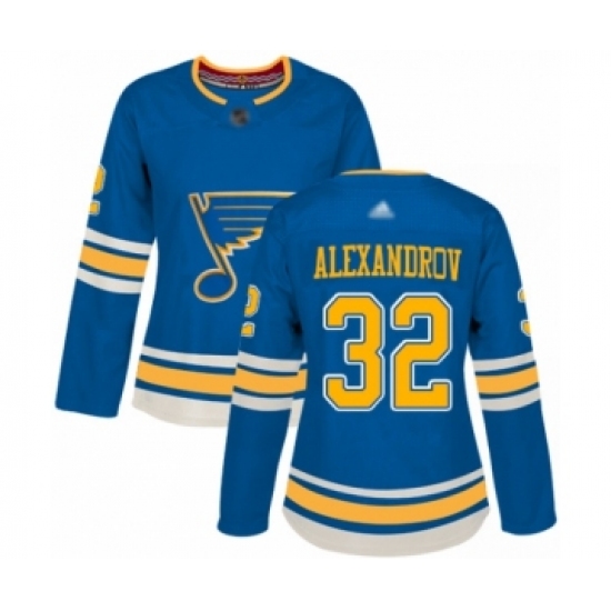 >Women's St. Louis Blues #32 Nikita Alexandrov Authentic Navy Blue Alternate Hockey Jersey