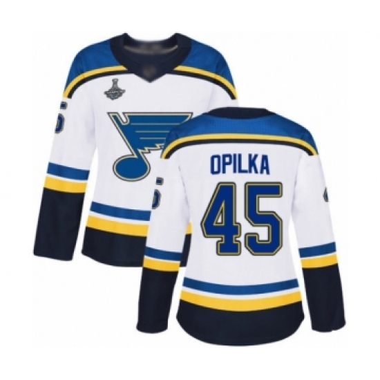 Women's St. Louis Blues #45 Luke Opilka Authentic White Away 2019 Stanley Cup Final Bound Hockey Jersey
