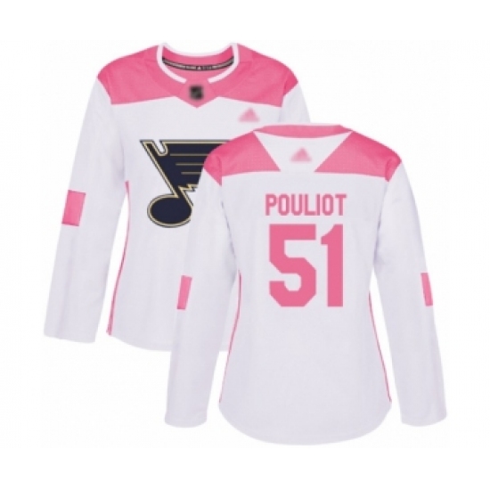 >Women's St. Louis Blues #51 Derrick Pouliot Authentic White Pink Fashion Hockey Jersey