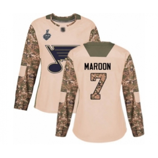 Women's St. Louis Blues #7 Patrick Maroon Authentic Camo Veterans Day Practice 2019 Stanley Cup Final Bound Hockey Jersey