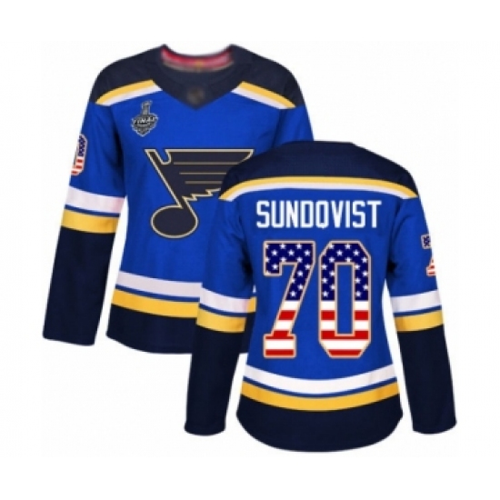 Women's St. Louis Blues #70 Oskar Sundqvist Authentic Blue USA Flag Fashion 2019 Stanley Cup Final Bound Hockey Jersey