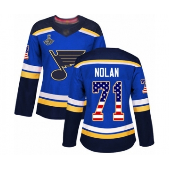 Women's St. Louis Blues #71 Jordan Nolan Authentic Blue USA Flag Fashion 2019 Stanley Cup Champions Hockey Jersey
