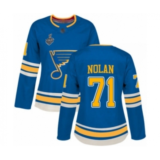 Women's St. Louis Blues #71 Jordan Nolan Authentic Navy Blue Alternate 2019 Stanley Cup Final Bound Hockey Jersey