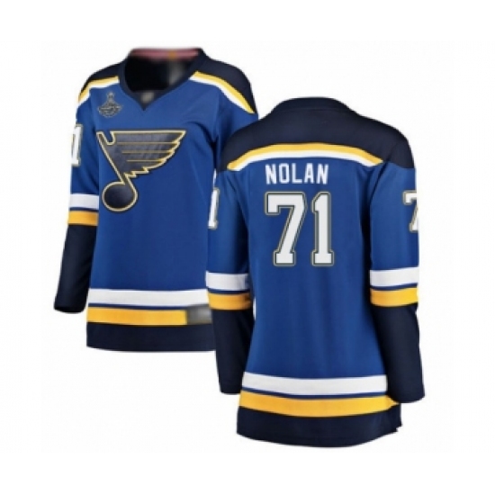 Women's St. Louis Blues #71 Jordan Nolan Fanatics Branded Royal Blue Home Breakaway 2019 Stanley Cup Champions Hockey Jersey