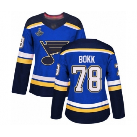 Women's St. Louis Blues #78 Dominik Bokk Authentic Royal Blue Home 2019 Stanley Cup Champions Hockey Jersey