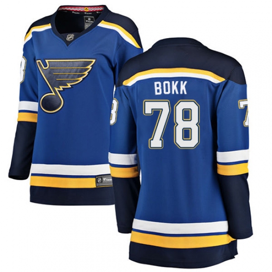 >Women's St. Louis Blues #78 Dominik Bokk Fanatics Branded Royal Blue Home Breakaway NHL Jersey
