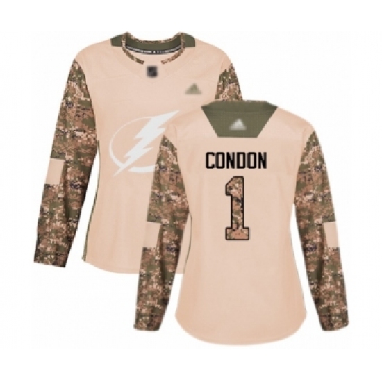Women's Tampa Bay Lightning #1 Mike Condon Authentic Camo Veterans Day Practice Hockey Jersey