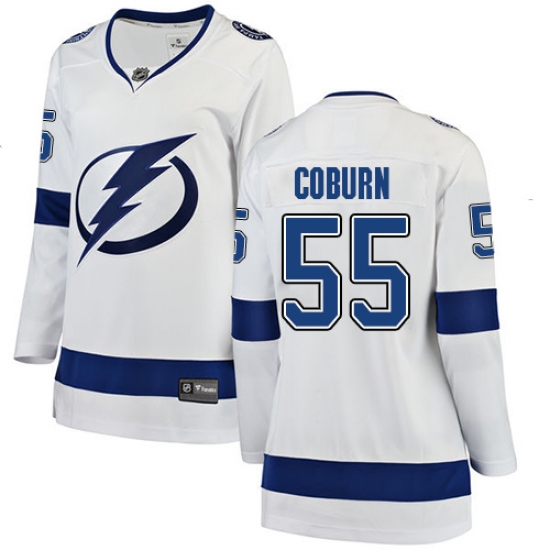 Home>NHL>Tampa Bay Lightning>Braydon Coburn>Women's Tampa Bay Lightning #55 Braydon Coburn Fanatics Branded White Away Breakaway NHL Jersey