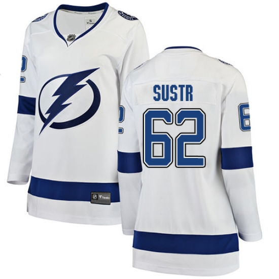Women's Tampa Bay Lightning #62 Andrej Sustr Fanatics Branded White Away Breakaway NHL Jersey