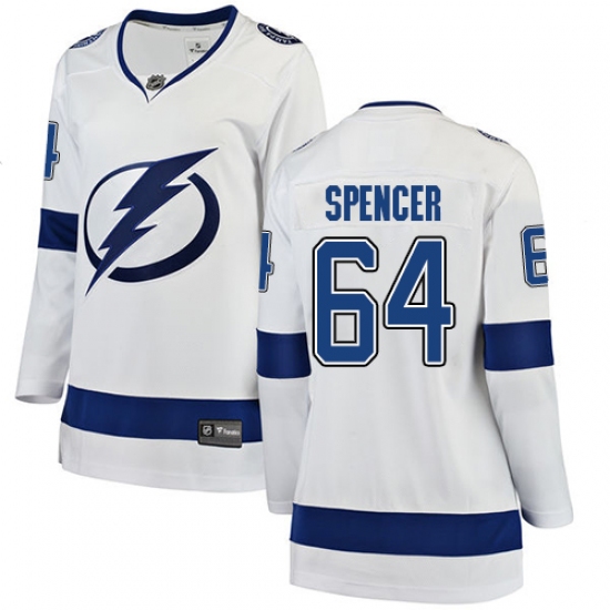 Women's Tampa Bay Lightning #64 Matthew Spencer Fanatics Branded White Away Breakaway NHL Jersey