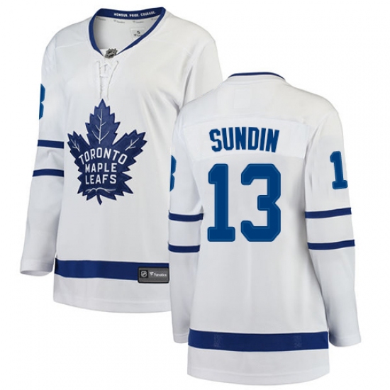 Home>NHL>Toronto Maple Leafs>Mats Sundin>Women's Toronto Maple Leafs #13 Mats Sundin Authentic White Away Fanatics Branded Breakaway NHL Jersey