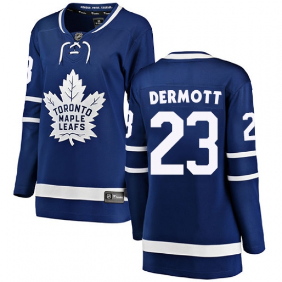 >Women's Toronto Maple Leafs #23 Travis Dermott Authentic Royal Blue Home Fanatics Branded Breakaway NHL Jersey