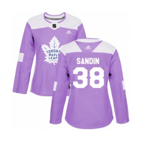 >Women's Toronto Maple Leafs #38 Rasmus Sandin Authentic Purple Fights Cancer Practice Hockey Jersey