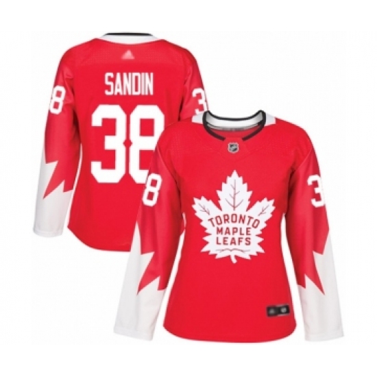 >Women's Toronto Maple Leafs #38 Rasmus Sandin Authentic Red Alternate Hockey Jersey