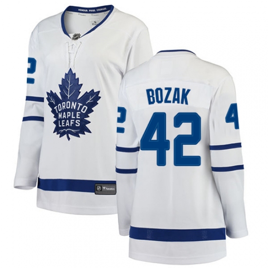 Women's Toronto Maple Leafs #42 Tyler Bozak Authentic White Away Fanatics Branded Breakaway NHL Jersey