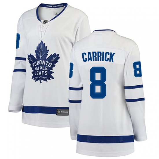 Home>NHL>Toronto Maple Leafs>Connor Carrick>Women's Toronto Maple Leafs #8 Connor Carrick Authentic White Away Fanatics Branded Breakaway NHL Jersey