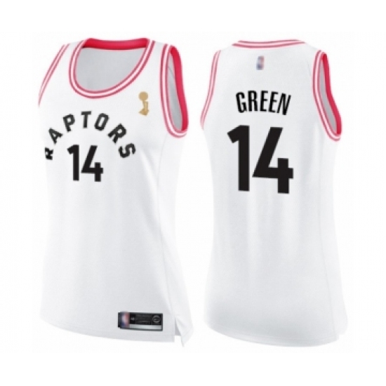 Women's Toronto Raptors #14 Danny Green Swingman White Pink Fashion 2019 Basketball Finals Champions Jersey