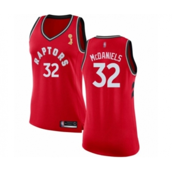 Women's Toronto Raptors #32 KJ McDaniels Swingman Red 2019 Basketball Finals Champions Jersey - Icon Edition