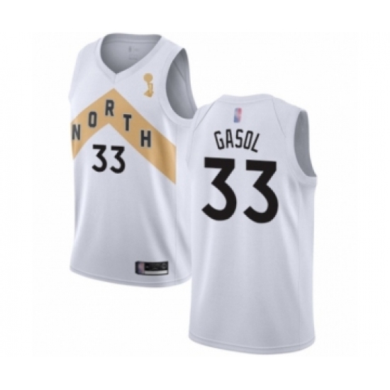 >Women's Toronto Raptors #33 Marc Gasol Swingman White 2019 Basketball Finals Champions Jersey - City Edition